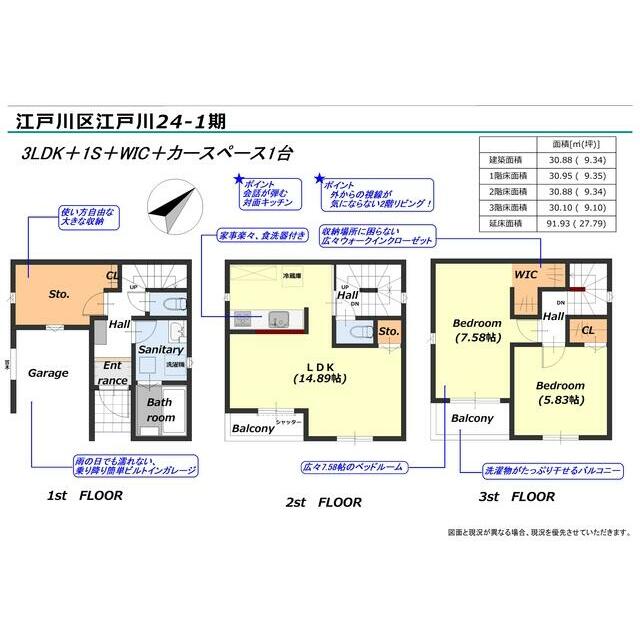 新築売戸建住宅 江戸川区 江戸川1丁目 (瑞江駅) 3階建 2LDK